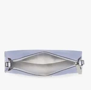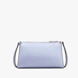 This iridescent purple/blue crossbody features one interior slip pocket, a zip closure and a small silver front logo plate.