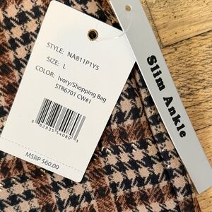 Stylish plaid pants by Zac & Rachel. Features a classic brown and black pattern. Perfect for any occasion.