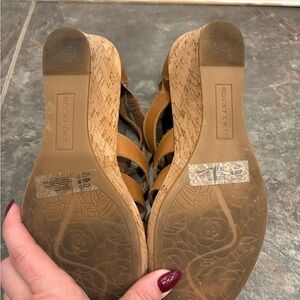 Step out in style with these chic brown wedge sandals. Perfect for any occasion, they offer both comfort and elegance. Size 9. Gently used