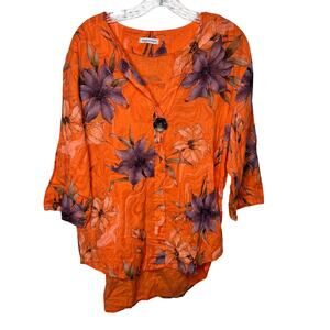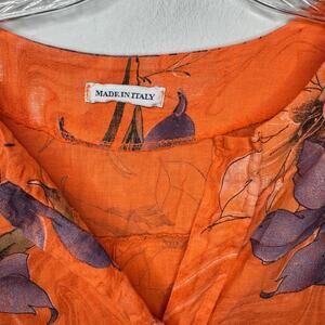 Made in Italy Orange Floral Linen Blouse Top Boho Oversized Tunic Arsty Tropical