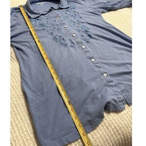 Woman Within Blue Embroidered Tunic Top Women's size Large (18/20) Cottagecore Boho Artsy Floral