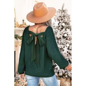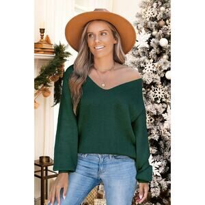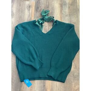 NWT Cupshe emerald green L/S V -neck bow sweater Med