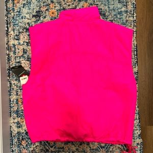 Vibrant pink vest with high collar. Features front zipper and pockets. Perfect for layering. Tags removed. Worn once.