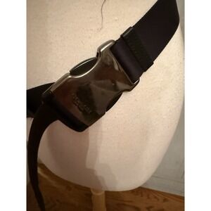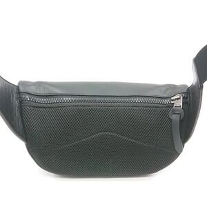The COACH Belt bag Terrain F75776 in Black Leather Mesh Back Classic is a small, stylish accessory designed for travel and casual occasions. Made with leather and a mesh back, this belt bag features a zip closure and inner and outer pockets for added convenience. The classic design by Coach includes a solid black color, nylon handle/strap, and a fabric lining, making it a versatile option for both men and women on the go. This belt bag adds a touch of sophistication to any outfit while providing practical storage for essentials. This is in good preowned condition.