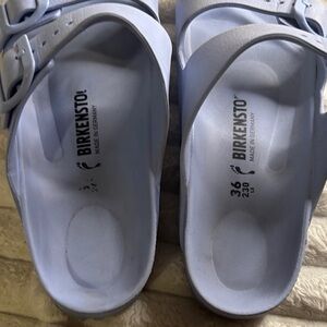 Stylish sky blue sandals with dual adjustable straps. Perfect for casual outings.