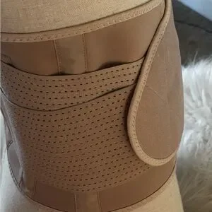 Enhance your outfit with this elegant tan belt. Perfect for adding a touch of sophistication to any ensemble.