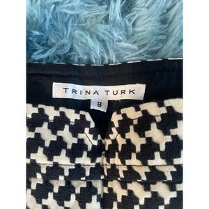 Keywords: Trina Turk pants, houndstooth trousers, black and white pants, dress pants, career pants, casual pants, patterned pants, size 8 pants, womens pants, designer pants, classic pants, stylish trousers, statement pants