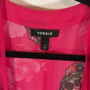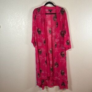 Torrid Pink Sheer Duster Kimino Topper Sugar Skulls Floral Size 3X