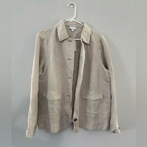 NWT J. Jill Flax Flannel Shacket Button down Shirt Beige Tan Size M Comfy Linen