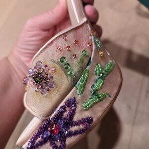 Step out in style with these Betsey Johnson embellished platform heels. Featuring a stunning pink and purple design, these shoes are perfect for making a statement. The intricate detailing adds a touch of elegance to any outfit.