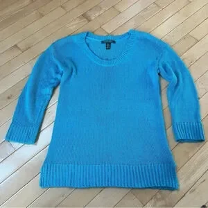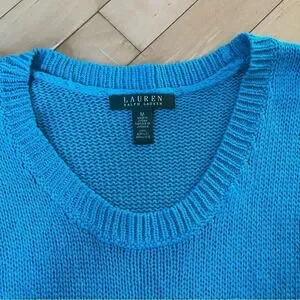 Lauren Ralph Lauren Sweater Women's Medium Blue Loose Knit 3/4 Sleeve Pullover