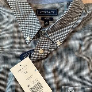 NWT Crown & Ivy Shirt 3XL Button Up Long Sleeve Shirt Blue Gingham Check Plaid