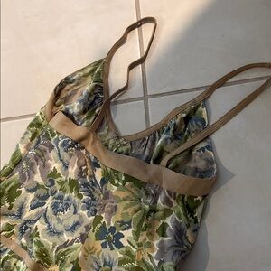 DKNY sz 2 silk floral green dress 1178 zipper on the side very little stretch measurement under arms across is 15 inches. Total length is 45 inches.