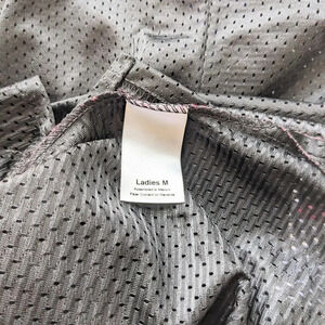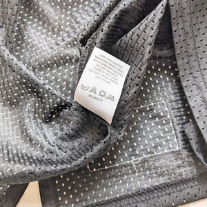 Women's black short sleeve, v-neck, mesh athletic Jersey with "WARRIORS" printed across the chest in blue letters with gray outline. This jersey has a somewhat fitted silhouette, side slits at hem and is "see through" but is really cute with a black, blue or white tank or tub top underneath. 100% Polyester. Never worn. Perfect to have when schools start up the sports season.