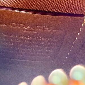 Compact and vibrant coin pouch by Coach. Features a textured exterior and secure zipper closure.