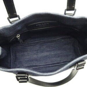 Prada Shoulder Bag Tote Denim Blue Nero Black