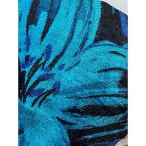 Venus Dress XL Blue Floral Mini Velour Faux Wrap 80s Bodycon Artsy Retro Vegas