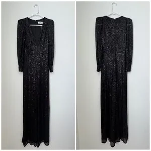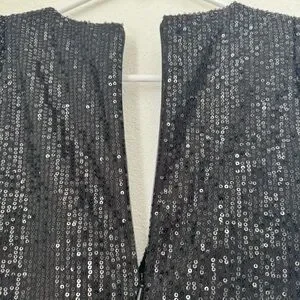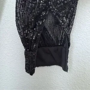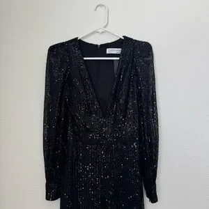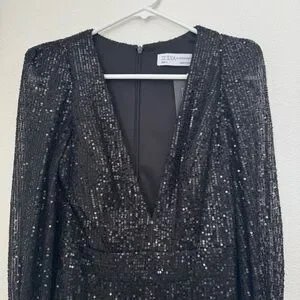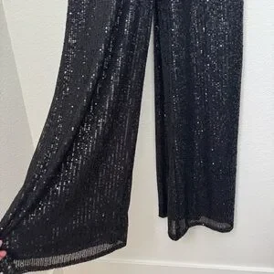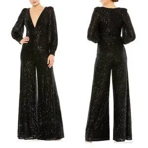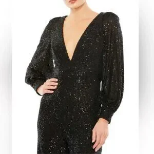 Mac Duggal Ieena Long Sleeve Wide-Leg Sequin Jumpsuit NWT in Black 2