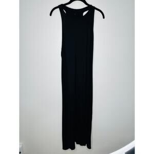 Black High Neck Plunging sides Sleeveless Gathered Flowy Back Maxi Tank Dress