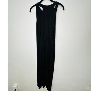 Black High Neck Plunging Sides Sleeveless Gathered Flowy Back Maxi Dress M