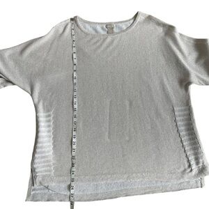 Chico's Silver Metallic Glitter Knit Short Sleeve Top Size: 2 (L)
