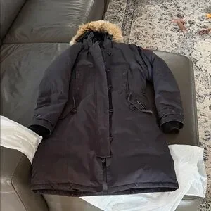 Canada Goose Black Puffer Coat with Fur Trim- small blue