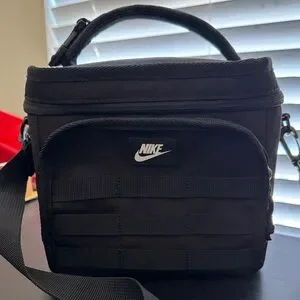 Compact and functional Nike lunch bag. Ideal for daily essentials. Durable design with adjustable strap.