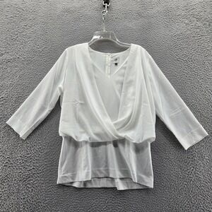 Cabi Womens Indulge Tunic Top Medium Ivory Layered V-Neck Lightweight Drape