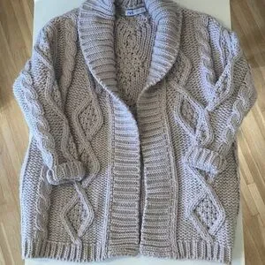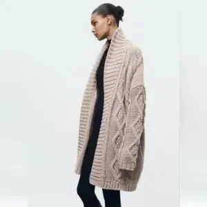 Cozy cable knit design. Open front style. Soft and warm material.