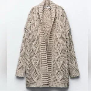Zara Cable Knit Sweater in Light Beige Small