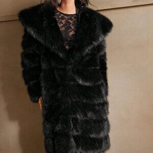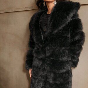 Black Casual Women's Elegant Fluffy Thickened Knee-Length Coat