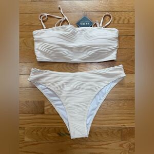 ZAFUL Women Strapless Textured Bandeau Bikini 2 Piece Cheeky Solid Lace up NWT