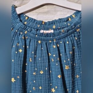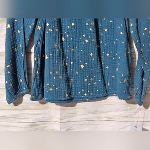 Stylish blue girl's top featuring a charming star print. Perfect for casual outings and adding a touch of fun to your wardrobe.