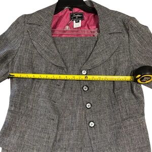 Discover elegance with this sophisticated gray blazer, enhanced by a striking pink lining. Ideal for both office and casual settings.