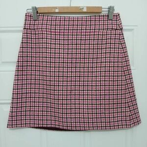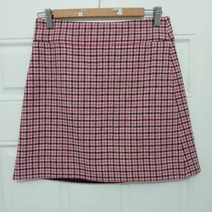 J crew women size 0 wool tweed plaid A-line mini skirt houndstooth pink