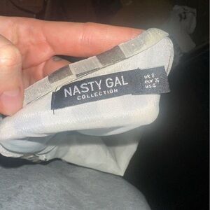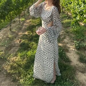 Nasty Gal Checkerboard Print Open Back Black and White Maxi Dress