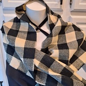 Chic plaid checkered black tan scarf by J. Crew. Versatile and stylish accessory. Acrylic. Fringe. 74x12.