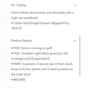Quality skort with the Sculpek Light Fabric that gives full coverage and all around stretch. New in excellent condition!