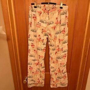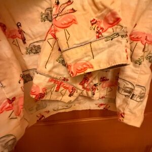 Airstreams, Pink Flamingos, Winter Scarves print on velvety-soft brush 100% cotton flannel pjs set. Hard to find (co. no longer making pajamas), Excellent condition!
