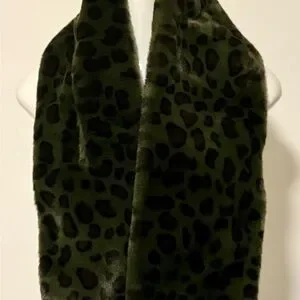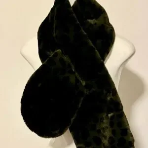Luxurious green faux fur scarf by Echo. This Gorgeous leopard print adds elegance to any look. Pull-through loop for versatile styling.