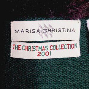 Vintage Marisa Christina Dark Green Cardigan Faux Fur Collar With Pom Christmas 2001. This cardigan is from the Vintage Marisa Christina Christmas Collection 2001 in Very Good pre-owned condition and features: