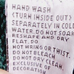 Care: Hand wash (turn inside out) separately in cold water. Reshape and dry flat. Do not wring or twist. Do not dry clean.