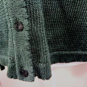 * Dark Green cardigan accented by Black faux fur collar and pom ties at neckline