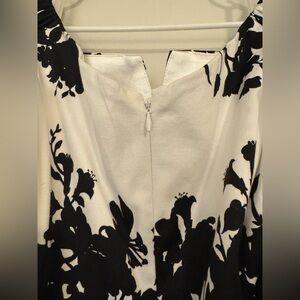This White House Black Market dress is a stunning addition to any wardrobe. The black and white floral pattern adds a touch of elegance, while the fit and flare style is perfect for any occasion. The dress features a sleeveless design, round neckline, and a zip closure for easy wear.