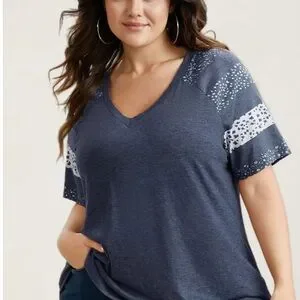 BloomChic Blue Ditsy Floral Colorblock Contrast Raglan Sleeve