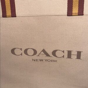 Coach Cream and Tan Canvas Tote Bag with Brown Accents