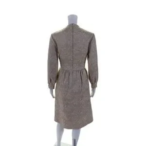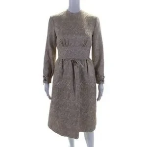 Reiss Womens Textured Glitter Geometric Zipped Charm Sleeved Dress Beige Size 2