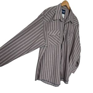 VINTAGE! Wrangler Men's 2XL Western Pearl Snap Brown Striped Shirt Multicolor