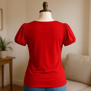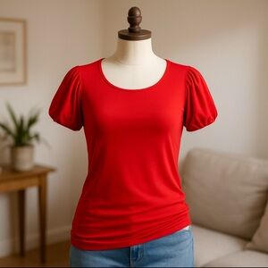 NWT Lauren Ralph Lauren Puff Short Sleeves Womens T-Shirt L Petite Red