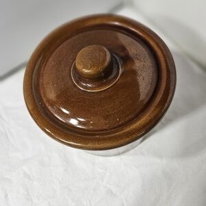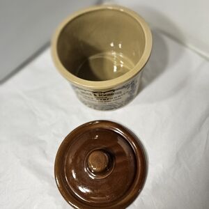 This is a collectible advertising stoneware butter crock with lid